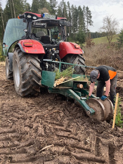 -Baumpflanzung Wurzelware mit Pflanzpflug bis 45 cm Tief auch auf teilweise bestockten Flächen möglich, -Pflanzleistung ca 70-100 Pflanzen pro Stunde möglich auch für kleine Mengen geeignet. -Pflanzung auch mit GPS möglich.