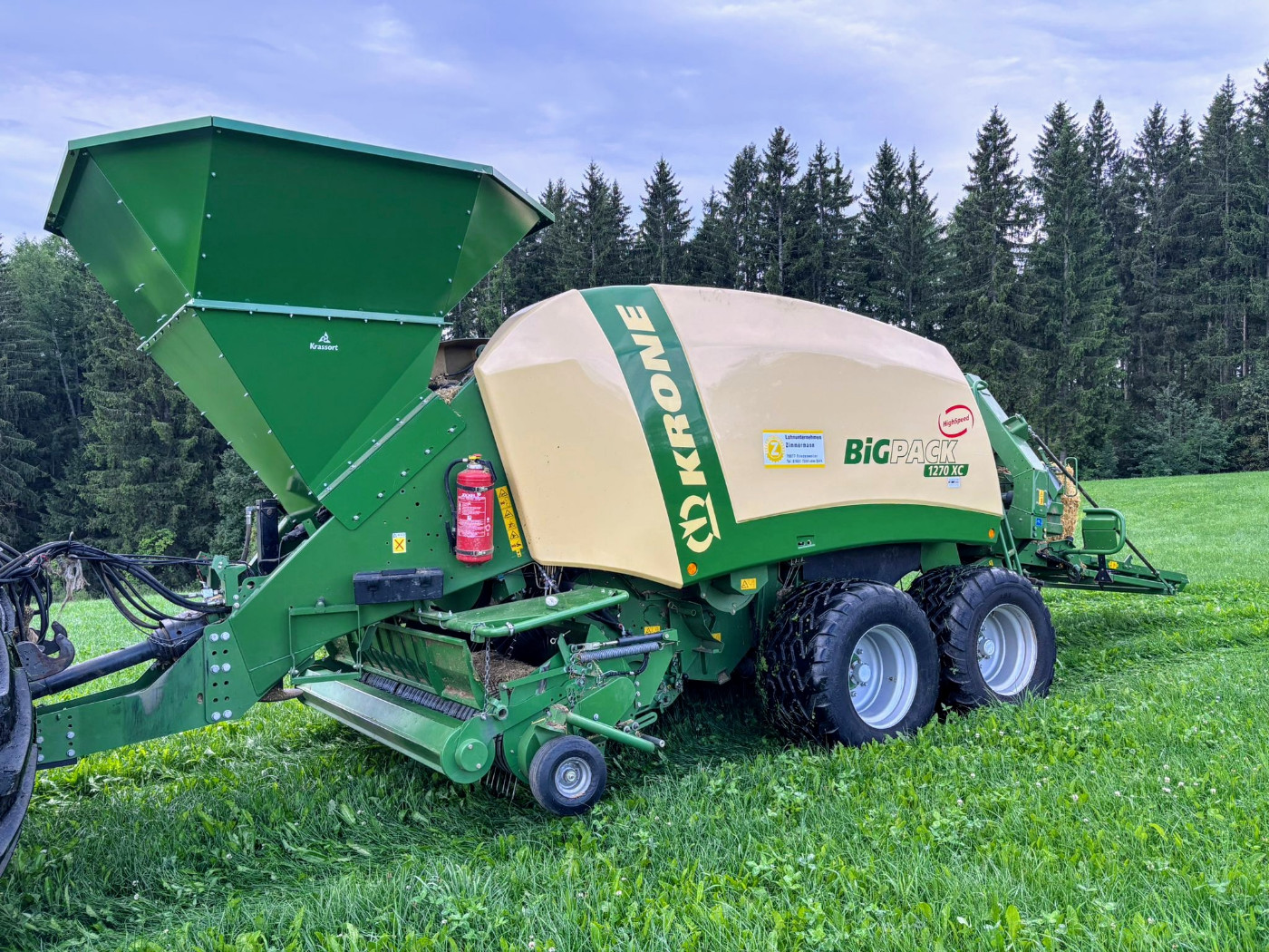 Krone Big Pack 1270 XC Kanalmaß 120/70 Gehäckseltes Stroh pressen Vorbautrichter zur Häckselgut aufnahme Wählbar 0, 13, 26 Messer oder Häckselstroh 190 Messer für perfekte Häckselqualität Theoretische Häcksellänge von 21mm Verbesserte Saugfähigkeit dank Zerfaserungseffekt Ideal geeignet für Liegeboxen, Geflügelställe, Sauen und Mastställen